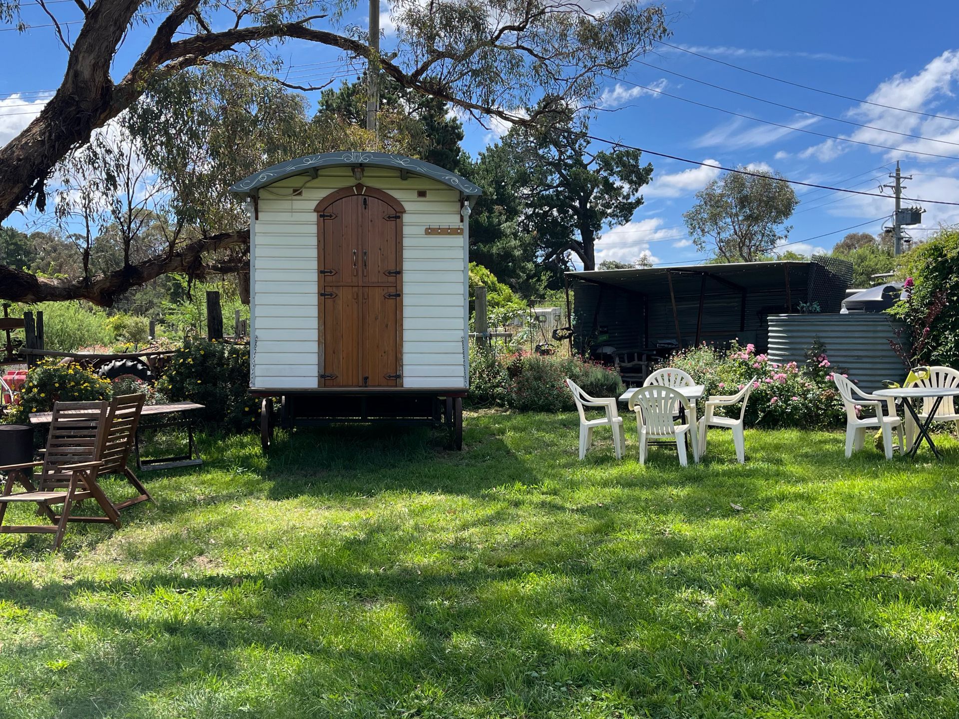 Our main venue The Tack Shed is a beautifully restored two room building with a kitchen and bathroom attached, as well as a covered veranda, an enclosed barbecue area, and spacious lawn. On site parking is available.